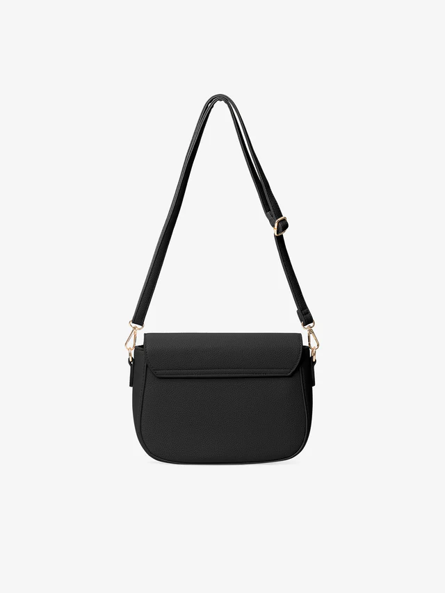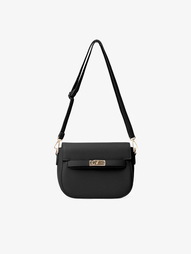 Elevate your everyday style with the Sleek Noir Black Crossbody Bag, designed for the modern, on-the-go individual. Crafted from high-quality textured faux leather, this bag combines minimalist sophistication with practical functionality. The sleek design features a turnover flap opening with a secure twist lock closure, ensuring your essentials stay safe while adding an extra touch of elegance.