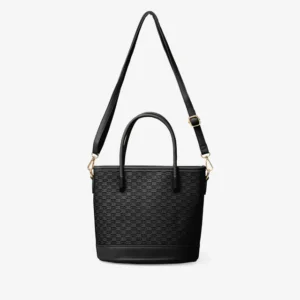 Introducing the Timeless Charm Black Bucket Shoulder Bag – where elegance meets functionality. Made from textured faux leather, this stylish